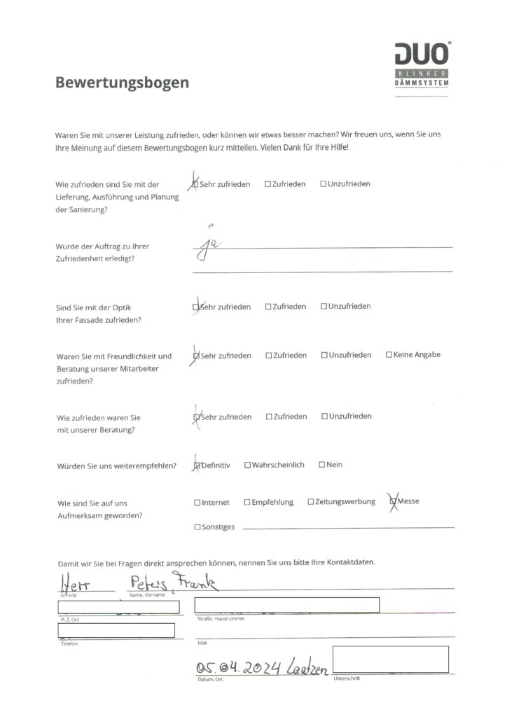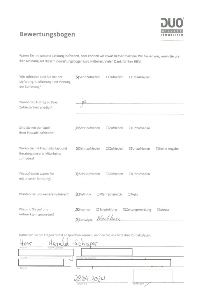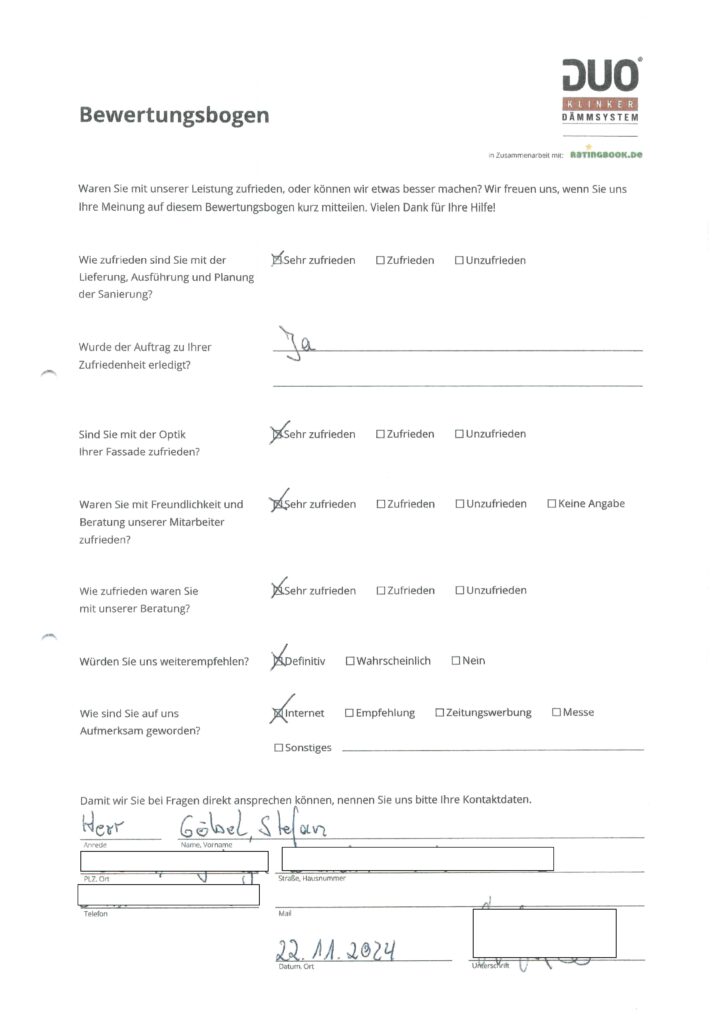 Die von uns angebotene Fassadendämmung mit Klinkerriemchen kommt sehr gut an. Nicht nur das Duoklinker Dämmsystem selbst, auch die Abläufe und Kundenbetreuung spielen eine große Rolle.